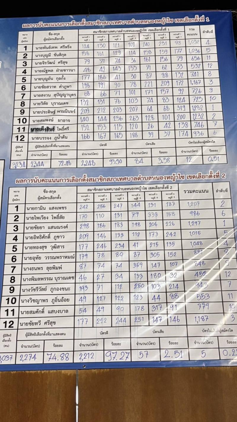 ผลการเลือกตั้ง เทศบาลตำบลหนองหญ้าไซ ปี 2568 อย่างไม่เป็นทางการ